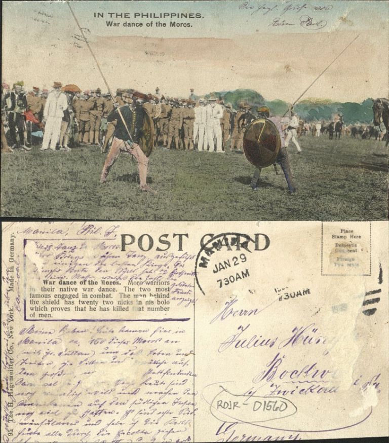 �IN THE PHILIPPINES�. War dance of the Moros.