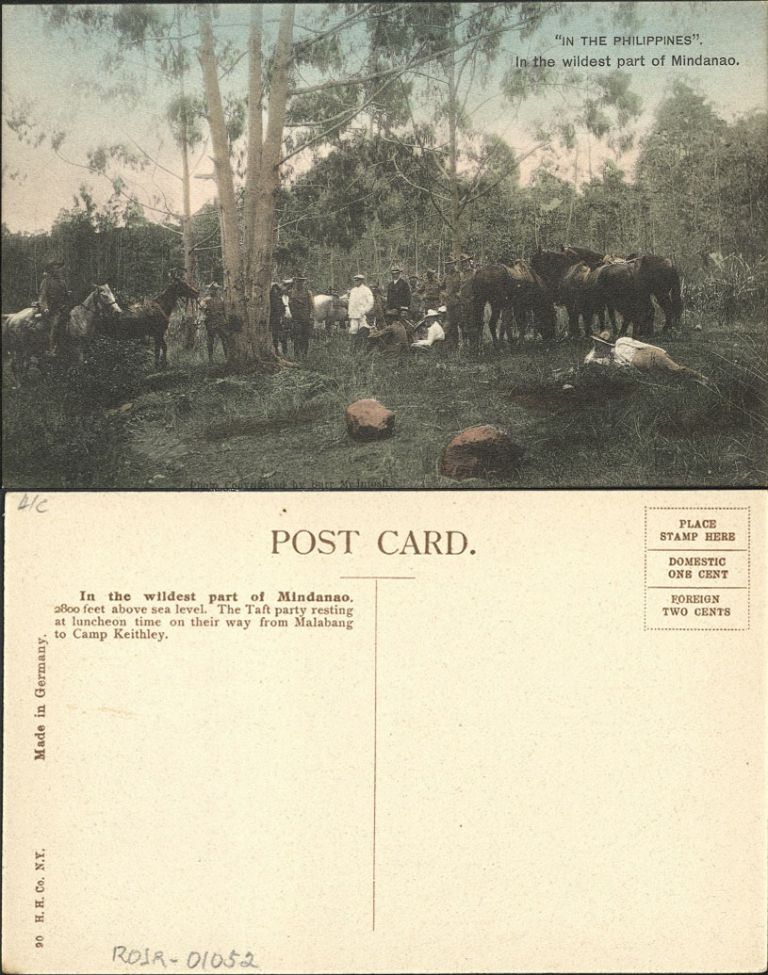Subject: Full caption: �2800 feet above sea level. The Taft party resting at luncheon time on their way from Malabang to Camp Keithley.� In 1905 U.S. Secretary of War William Taft and a party incl