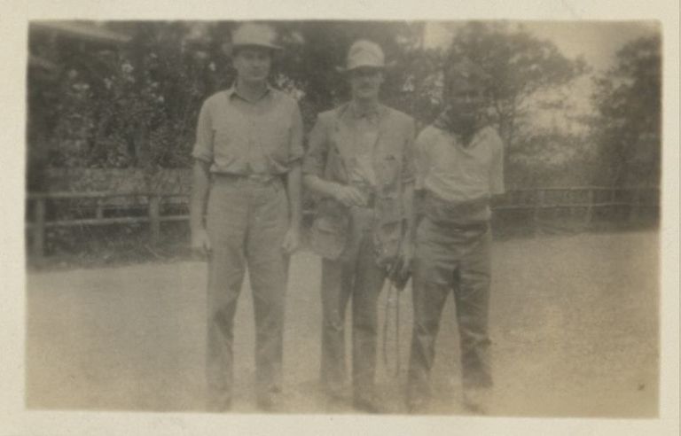 Igor [Igor Sergei Arkhangelsky], Mr. [Harrison] Hole, and Mr. [Edson H.] Cooper at the start of the Northern Hike.