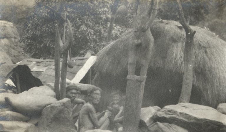 Igorot men gathered together at the ulug.