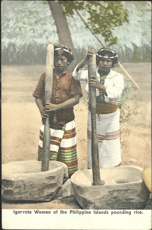 Igorrote [Igorot] women of the Philippine Islands pounding rice.