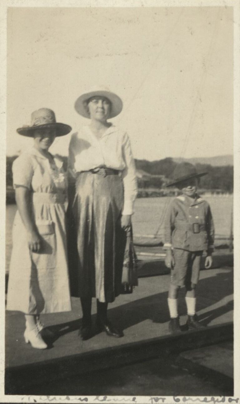 Subject: Family of a military officer - wife, daughter, and young son - on a pier about to board for Corregidor. This may be at Subic Bay or at Mariveles on Bataan.