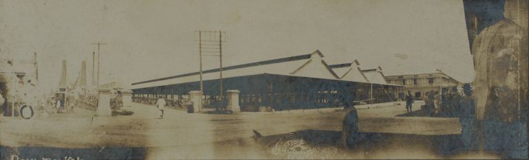 Subject: What allows us to place this market despite the amputatated caption is the bridge pilings on left - that is the entrance to the Puente Colgante (suspension bridge) that served pass