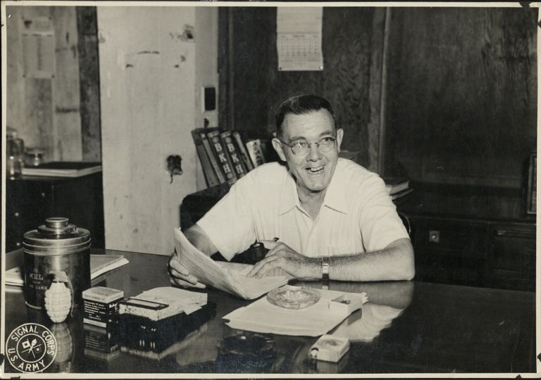 Subject: Publicity photo of a member of the International Male Chorus. Founded in Manila in 1945, they were primarily American servicemen with a few Australians and Filipinos. They went on to perform