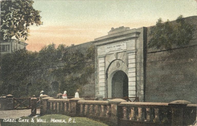 Subject: Puerta de Isabel II, opened in 1861, was the last gate to be built in Intramuros. It was intended to reduce heavy pedestrian traffic outside the Parian Gate to the Bridge of Spain and Binond