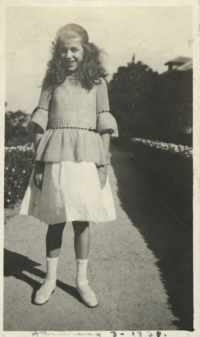 Subject: Probably the elder Rayner daughter (see OFI-004794, in different clothes), standing on a path in the Philippines. This may be on Corregidor - see OFI-004634.