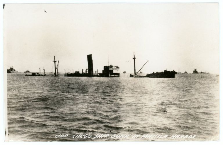 Jap [Japanese] cargo ship sunk in Manila harbor.