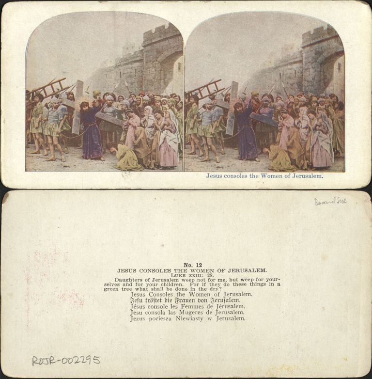 Religious-themed #REL-012. Illustration of Jesus consoling the weeping women of Jerusalem while carrying the cross.