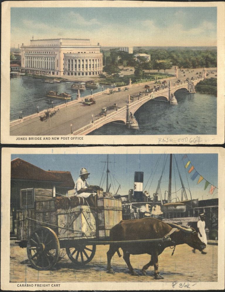 Jones Bridge and new post office [backed with] carabao freight cart.