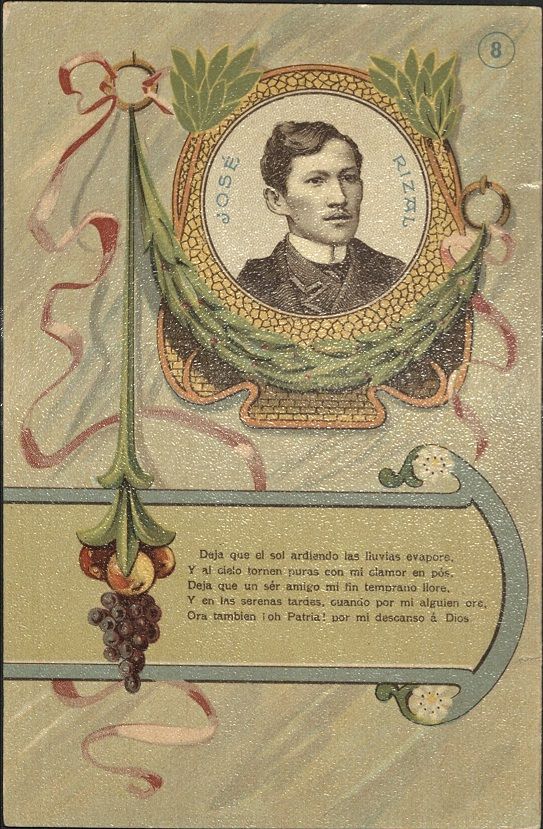 Jos� Rizal �Mi �ltimo Adi�s� 8th stanza. Deja que el sol ardiendo las lluvias evapore� [Let the burning sun the raindrops vaporize�]
