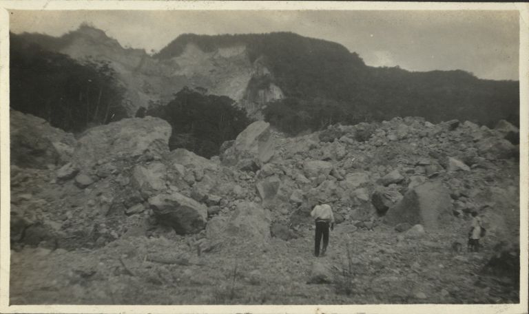 Subject: Trees, rocks, and dirt from a massive landslide. Assuming the "bay" is Subic Bay, this could be either in Bataan or Zambales Province. It appears the whole mountainside gave way, probably in