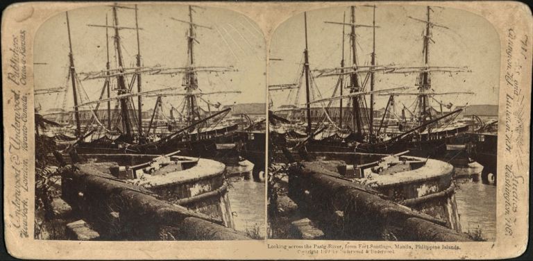 Underwood #U200. Sailing ships in mouth of Pasig River, as seen from walls of Fort Santiago.