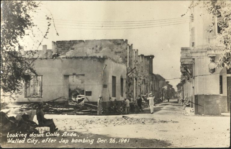 Looking down Calle Anda, Walled City, after Jap bombing Dec. 26, 1941.