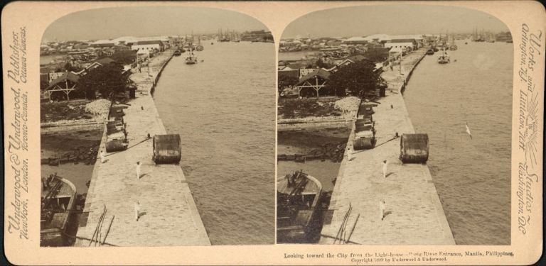 Underwood #U175. View of river, ships, and wharves along Pasig River in Manila, Philippines.