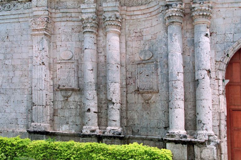 Subject: Detail of stone carving on columns of Nuestra Se�ora de la Luz Parish Church in Bohol, commonly known as Loon Church. Domingo de Escondrillas designed the stone church (now in ruins) which