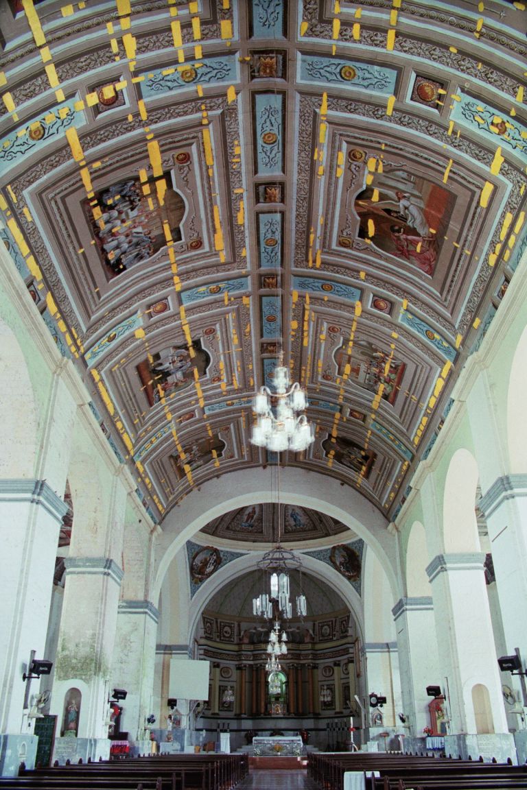Subject: Interior view of mural painted ceiling of Nuestra Se�ora de la Luz Parish Church in Bohol, commonly known as Loon Church. "Adorning the church are paintings on its ceiling and walls, and ga