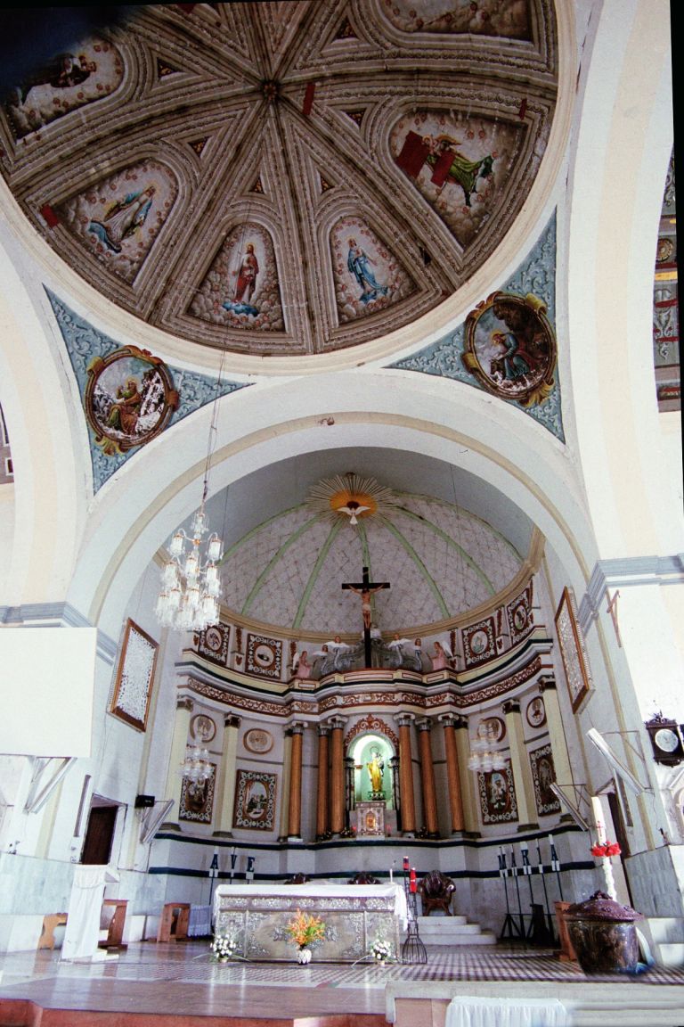 Subject: Interior view of mural painted ceiling of Nuestra Se�ora de la Luz Parish Church in Bohol, commonly known as Loon Church. "Adorning the church are paintings on its ceiling and walls, and ga