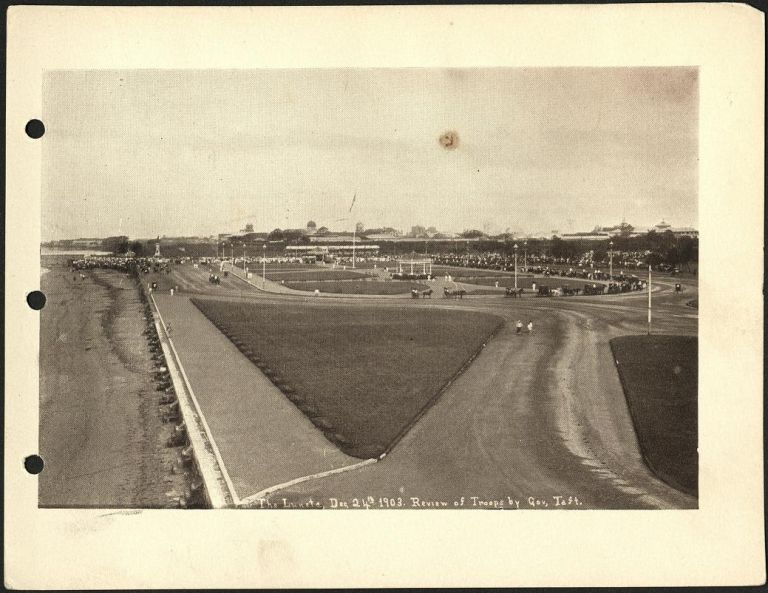 Subject: Nice view of Luneta Park and the Manila waterfront before land reclamation. Mr. Taft left Manila after this ceremony in December, 1903, to become Secretary of War in President Roo