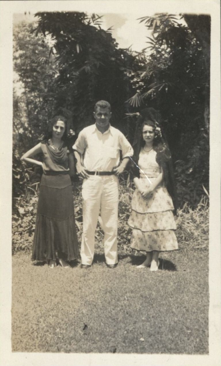 Subject: Friends of Harry Hawkins, Jr. outdoors in formal dress. Harry Jr. left no description of how he knows these people or what event is pictured.