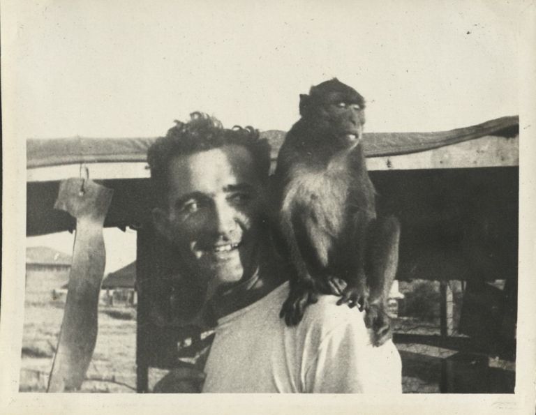 Subject: Pet macaque playing with soldiers, presumably of the 29th Engineers. The Philippine long-tailed macaque (Macaca fascicularis philippensis) is a subspecies of the crab-eating macaque. See also