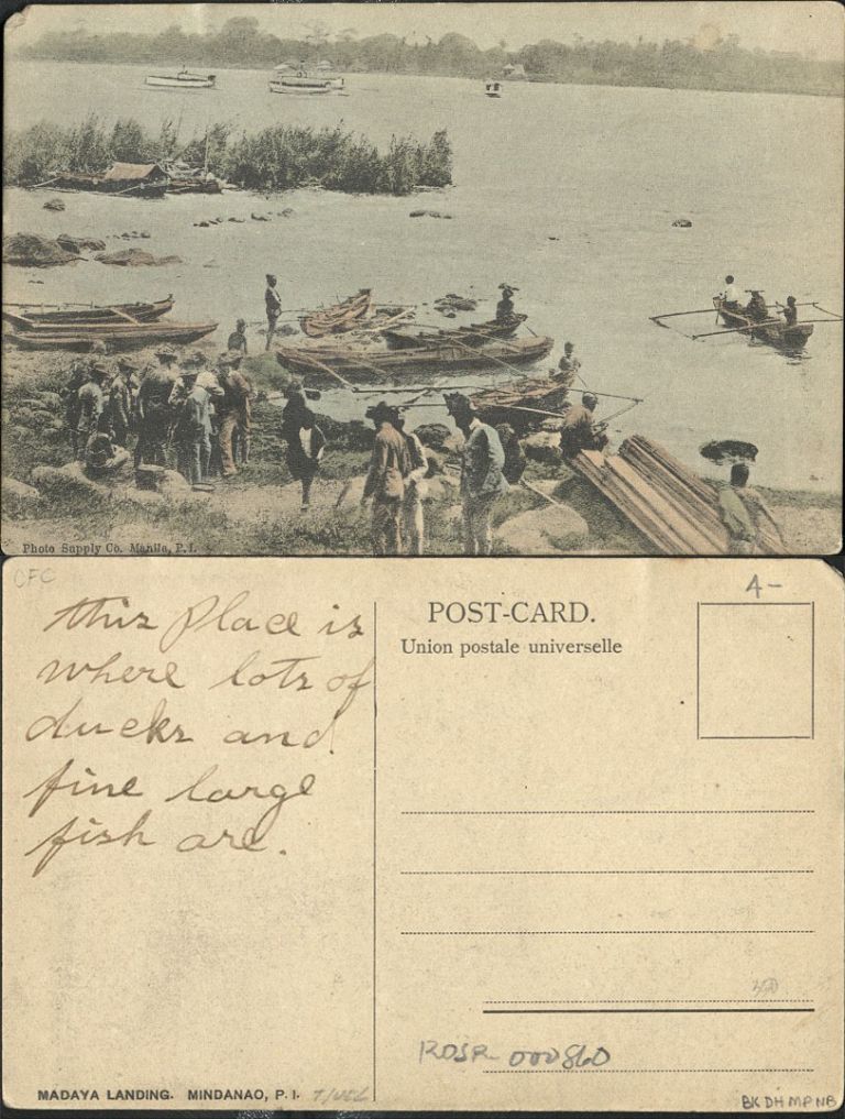Subject: Boats and people on river bank landing. Madaya is a barangay of the municipality Binidayan in the province Lanao del Sur in Mindanao.