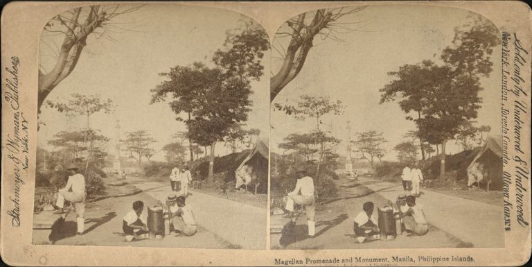Underwood #U90a. The Magellan Monument was erected in 1848 by the orders of Gobernador-General Narcisco Claveria. It was originally located at the center of Paseo de Magallanes just outside the northern walls of Intramuros, near the Puerta de Isabel II. W