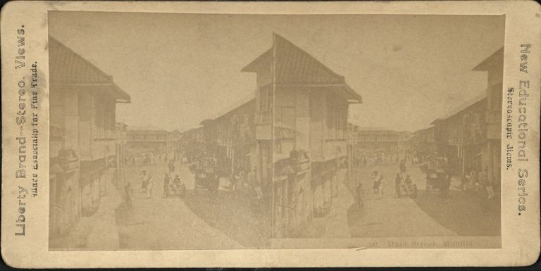 Liberty #L96. View from 2nd story down Escolta, with pedestrians and calesas..