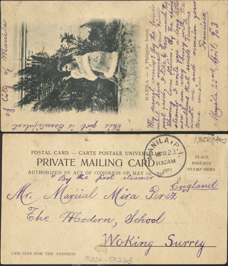 Type: Private mailing card. Undivided back, white border, B/W. Postally used (postmark - 1903).