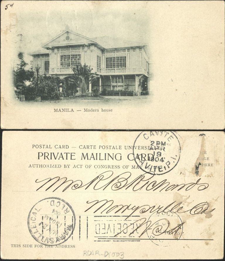 Type: Private mailing card, undivided back, white border, B/W. Postally used (postmark - 1904).