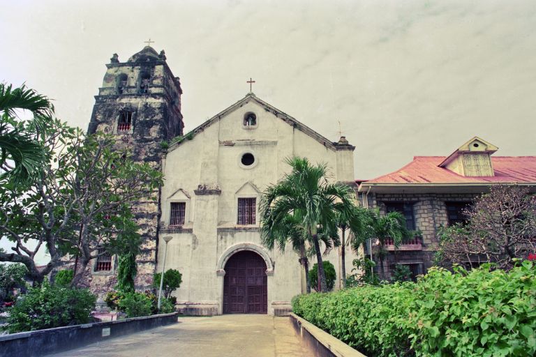 Maragondon Church, Cavite - facade, convent, and bell tower view.