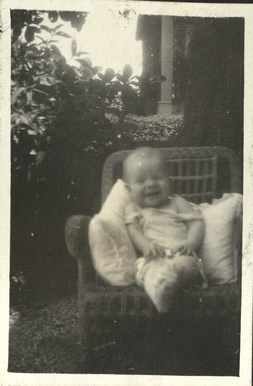 Subject: Mary Anne Denney looking much happier sitting in a wicker chair on the patio. Most likely taken on Corregidor Island in 1920. See also OFI-004597-4599.