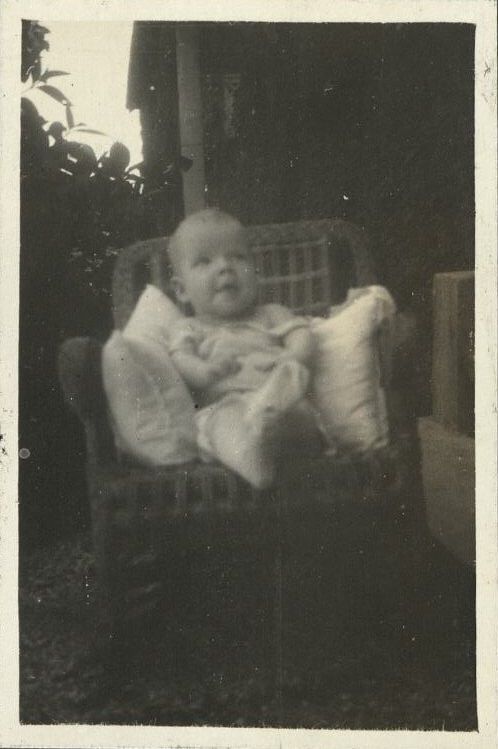 Subject: Mary Anne Denney looking much happier sitting in a wicker chair on the patio. Most likely taken on Corregidor Island in 1920. See also OFI-004597-4599.