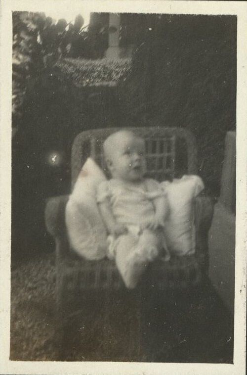 Subject: Mary Anne Denney looking much happier sitting in a wicker chair on the patio. Most likely taken on Corregidor Island in 1920. See also OFI-004597-4599.