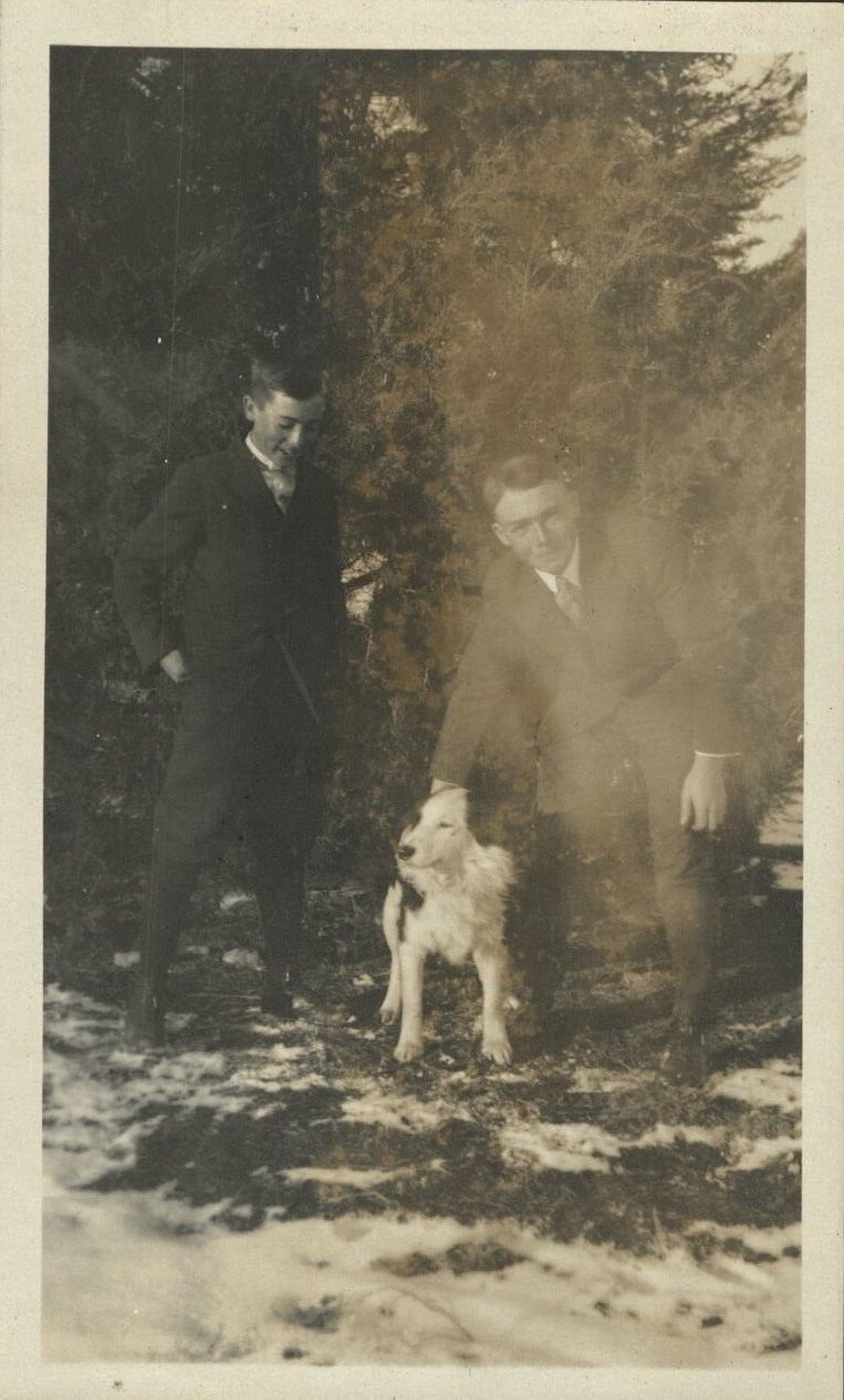 Subject: We can speculate that these two men standing in the snow are brothers or other relatives of the family compiling this album. What's unclear is whether the family travelled from the Philippine