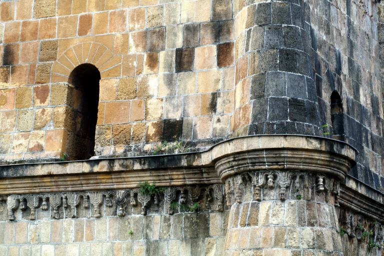 Subject: Detail of stone carving on the bell tower of Miagao Church, also known as the Sto. Tomas de Villanueva Parish Church, in Miagao, Iloilo. It was also called the Miagao Fortress Church since it