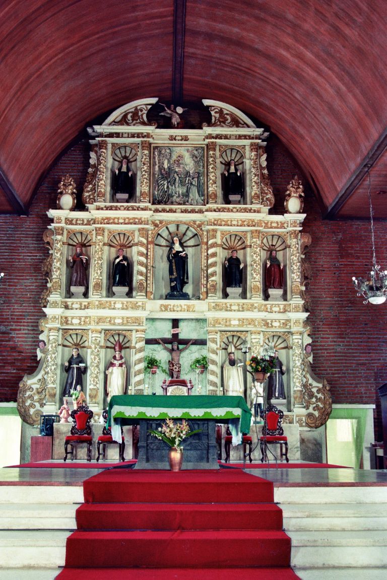 Subject: The altar and retable of Santa Monica Parish Church, also known as Minalin Church in Pampanga. The church probably was completed in 1764 (sources vary) and was reconstructed several times. Th