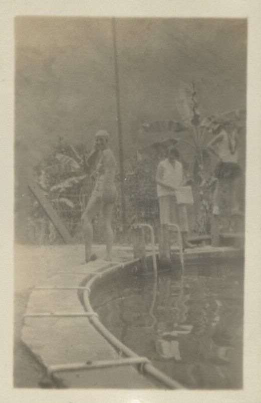 Subject: Harry's friend and perhaps some teachers or parents from Brent School at the swimming pool at the guesthouse at Antamok gold fields in Benguet Province.