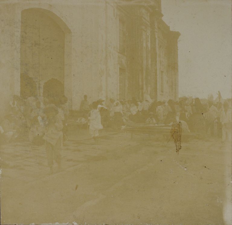 Subject: Funeral procession arriving at a church, probably in or around Imus, Cavite (see OFI-001891 and OFI-002073). It's unclear if this is for military or civilian dead.