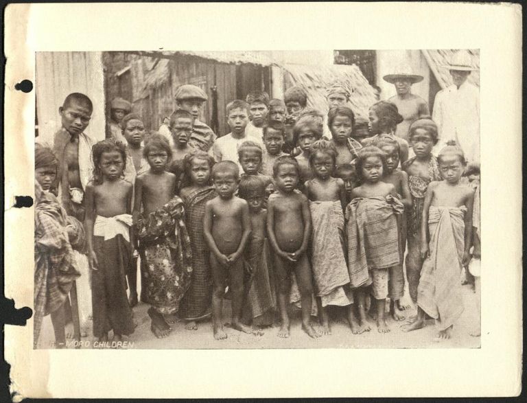 Subject: A big group of Philippine Muslim ("Moro") children pose in a village in Mindanao. Givens was the post photographer at the Presidio of San Francisco starting in 1899. In 1900 he tr