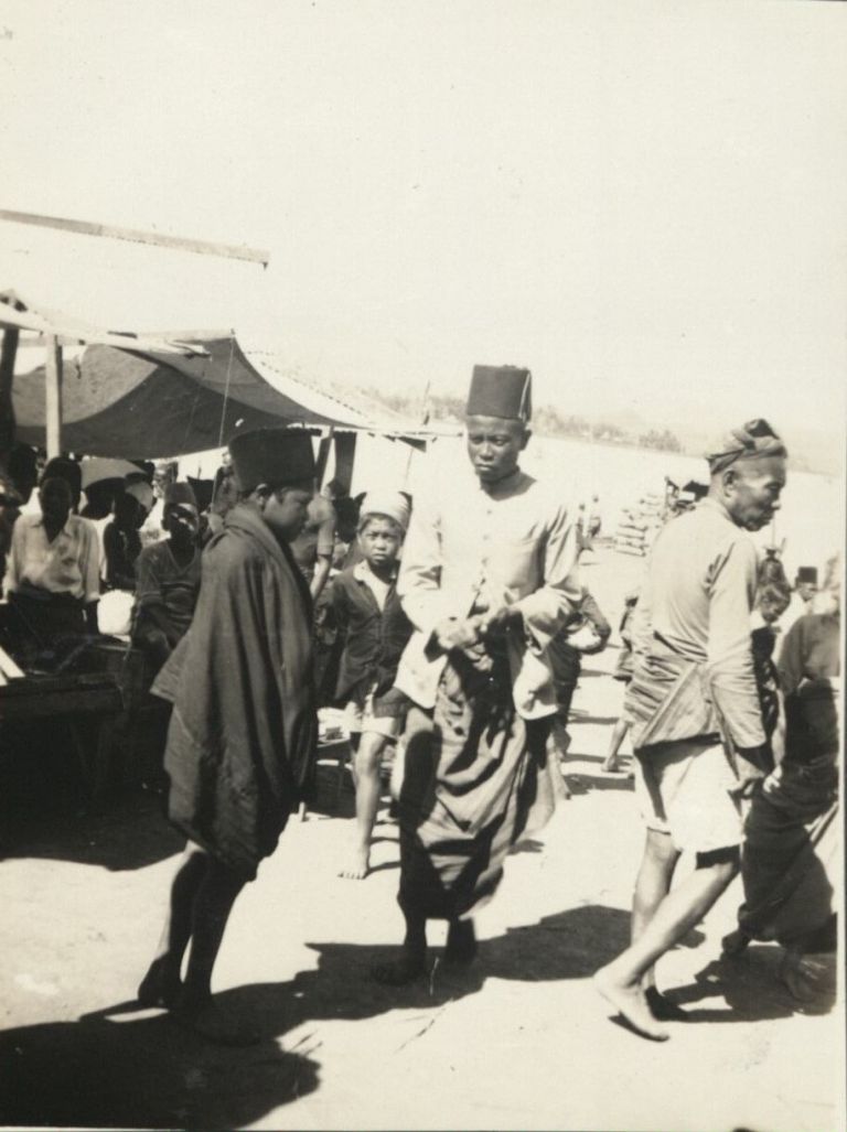Subject: Philippine Muslims at the market in Dansalan, now known as Marawi, Lanao del Norte, Mindanao.