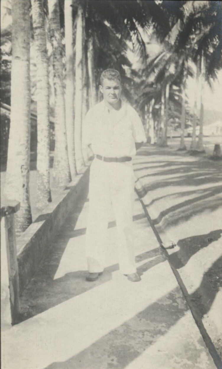 Subject: Coconut palms line both sides of a street near the house where the Hawkins family stayed while in Legaspi City. See also OFI-000771. There was a Edson H. Cooper who taught history, Spanish, a
