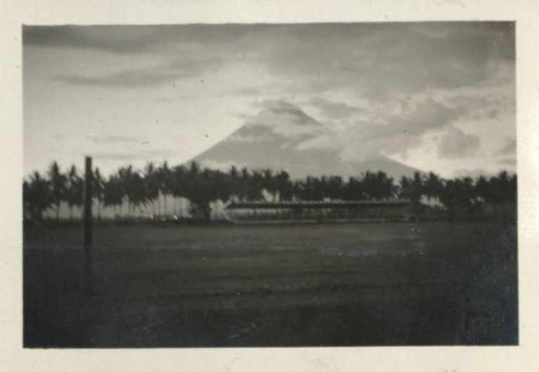 Subject: Mt. Mayon, or Mayon volcano, seen past farm fields.