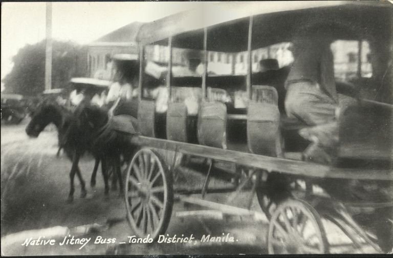 Subject: Horse-drawn passenger carriage in streets of Tondo Disctict, Manila.