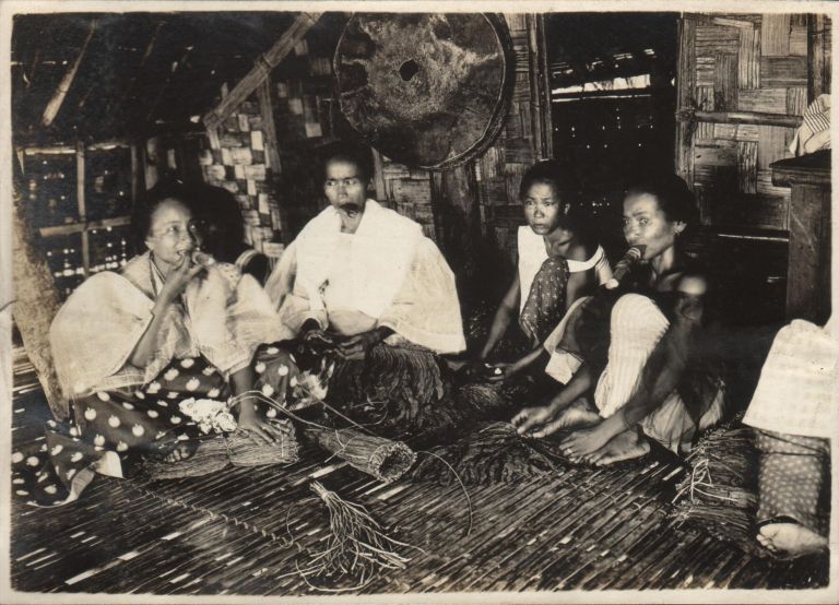 Native tobacco growers. Native women tying up bundles of tobacco [?].