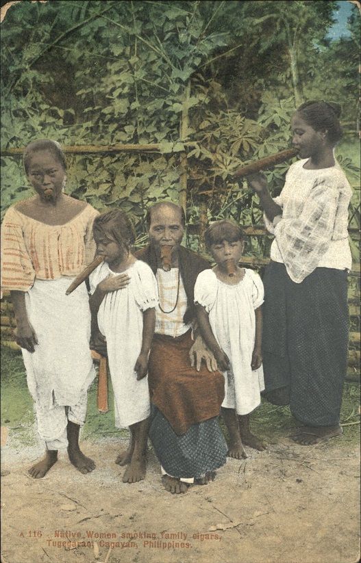 Native women smoking family cigars, Tugegarao, Cagayan, Philippines.
