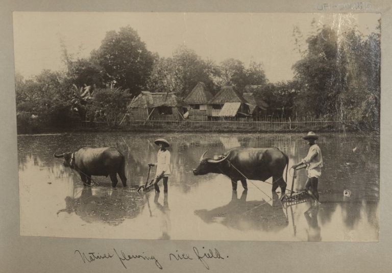 Natives plowing rice field.