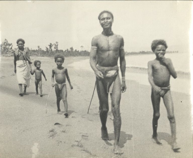 Subject: An Aeta family in native dress walk along a sandy beach near Palanan Bay, Isabela Province. The Aeta are an indigenous people who live in scattered, isolated mountainous parts of Luzon. The A
