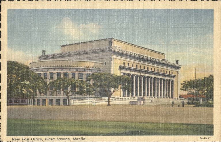 Subject: The neoclassical Post Office, completed in 1930 after several delays, sits on the Pasig River at Jones Bridge, just across Plaza Lawton (renamed Liwasang Bonifacio). It was heavily damaged in
