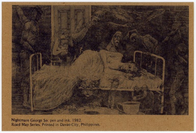 Reproduction of a pen and ink drawing by George So, 1982. Road Map Series. Road Map Series is an independent art-house publication in Davao edited by Tita Lacambra Ayala.