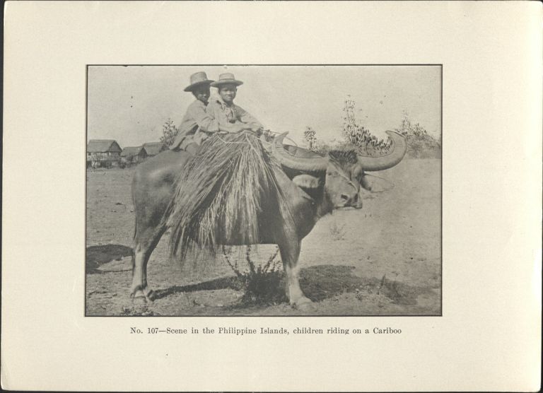 No. 107 - Scene in the Philippine Islands, children riding on a cariboo [carabao].